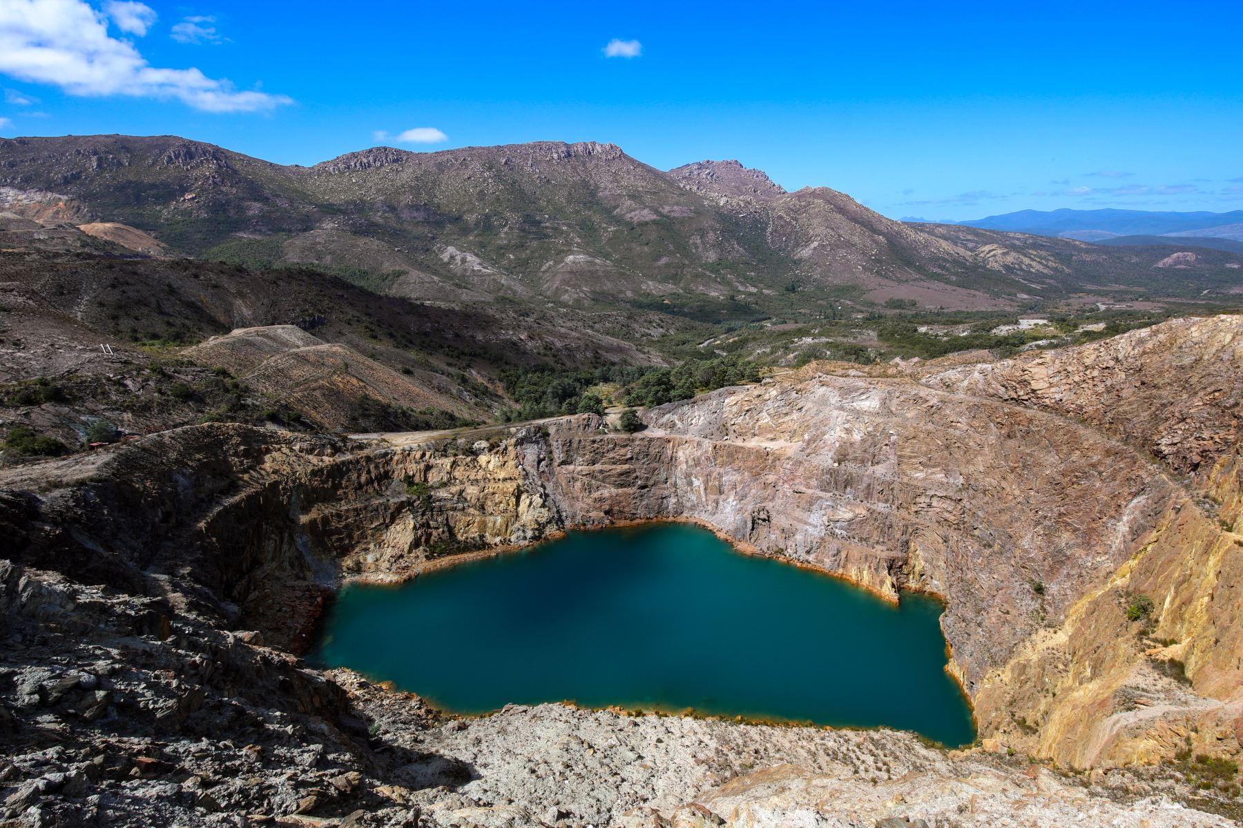 20 minutes back towards the coast from Nelson Falls is Iron Blow Lookout, another spectacular must-see sight! This is a reminder of Tasmania’s tortured mining history; a spot where miners descended back in the 1800s after gold was discovered nearby. After years of unearthing profitable deposits of copper, Iron Blow is now a discarded mining pit filled with beautiful turquoise water.